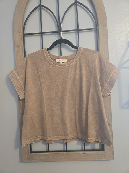 The Washed Boxy Tee in Brown features a mineral wash treatment that enhances softness and comfort of this 100% cotton tee. Its boxy fit allows for ease of movement, while the unique patch and raw seam detail on the back add a distinctive style element. This tee combines functionality with aesthetic appeal, making it suitable for various casual settings.