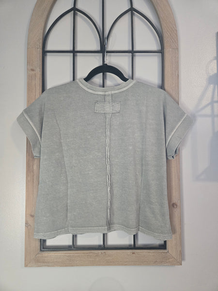 The Washed Boxy Tee in Sage is crafted from 100% cotton, ensuring breathability and comfort. The mineral wash finish enhances its softness, while the unique patch and raw seam detail on the back add an element of style. This tee combines practicality with a contemporary aesthetic, suitable for various casual settings.